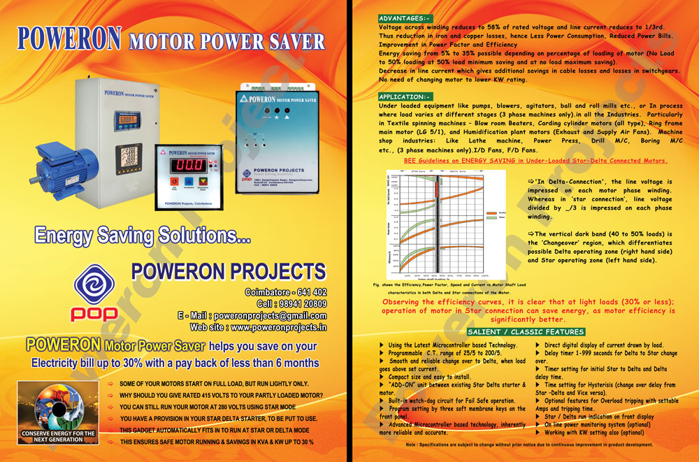 Under loaded equipment like pumps, blowers, agitators, ball and roll mills etc., or In process where load varies at different stages (3 phase machine s only).in all the Industries.